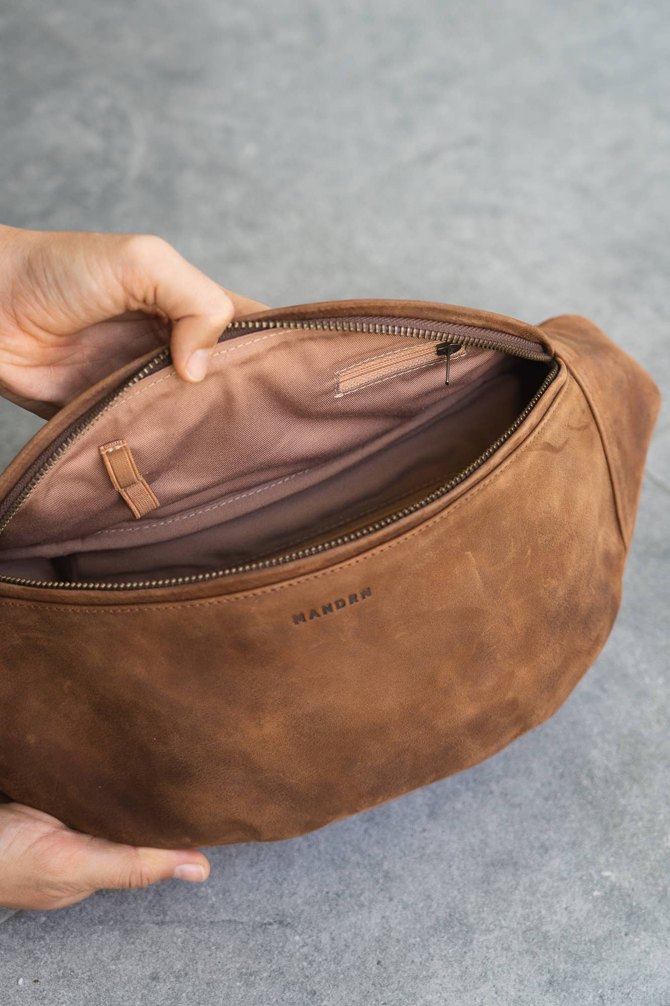 Chase your next adventure and let this timeless leather fanny pack design carry you from plane ride to sunset and everywhere in between. Handmade by artisans in Bali, this roomy design is both elegant and versatile.