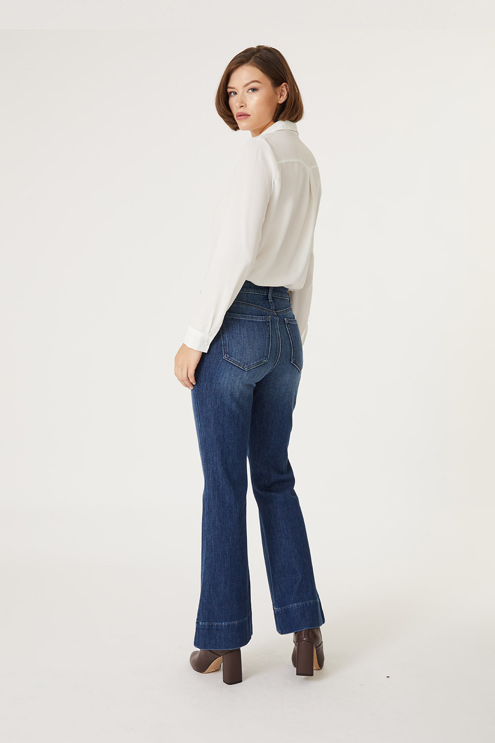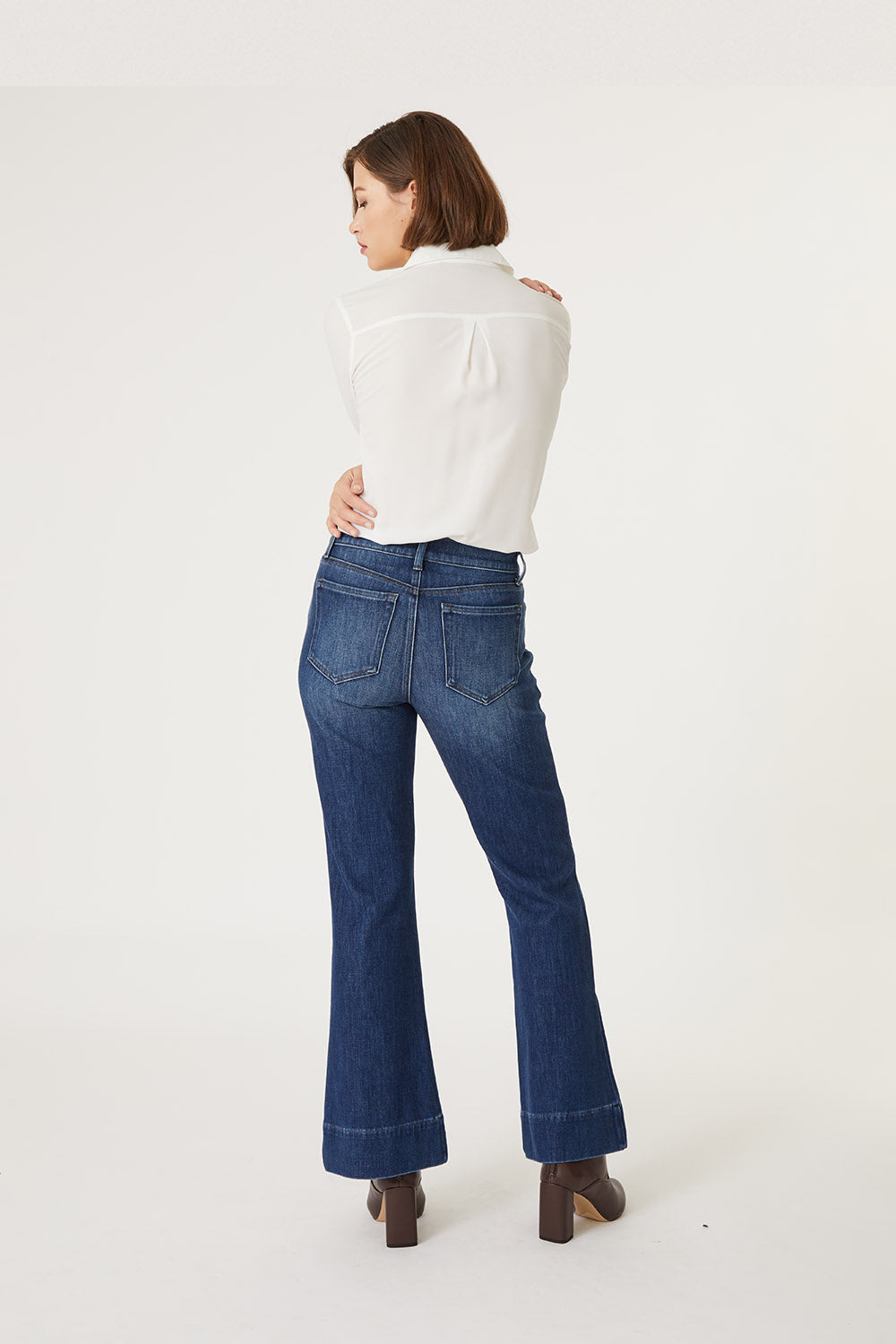 If you have shoes to show off...Claudia flare is the jean for you. These are mid rise slim fit jeans with a wide hem cropped bootcut leg. They are crafted in an unbelievably soft 4-way stretch denim design for lasting comfort and hold.