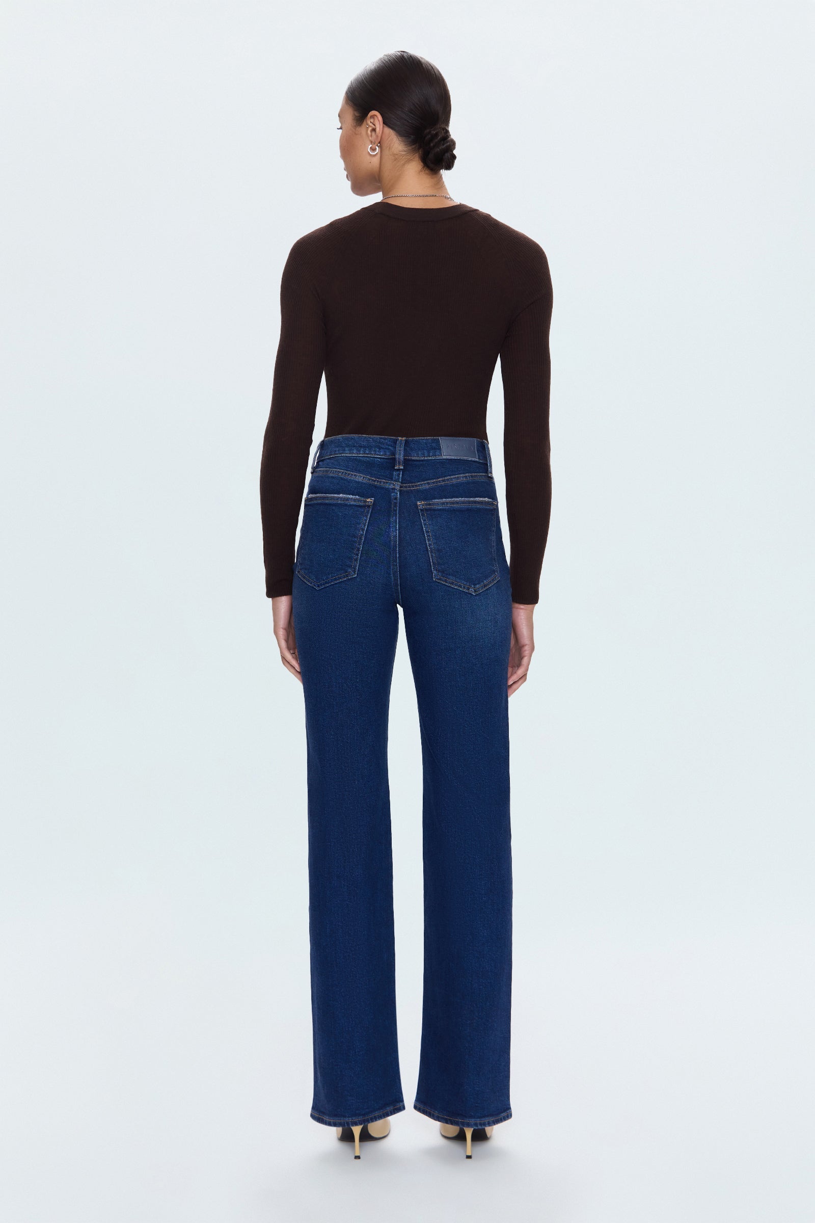 The slim boot that flatters every frame. Evie sits at a high rise with a slim fit through the hips and thighs before opening to a subtle bootcut, creating long, lean lines with just the right amount of flare. The full-length 33" inseam elongates the silhouette, making it endlessly versatile for heels or boots. Crafted from comfort stretch denim in Penthouse, a dark indigo wash with refined fading that adds depth and sophistication.