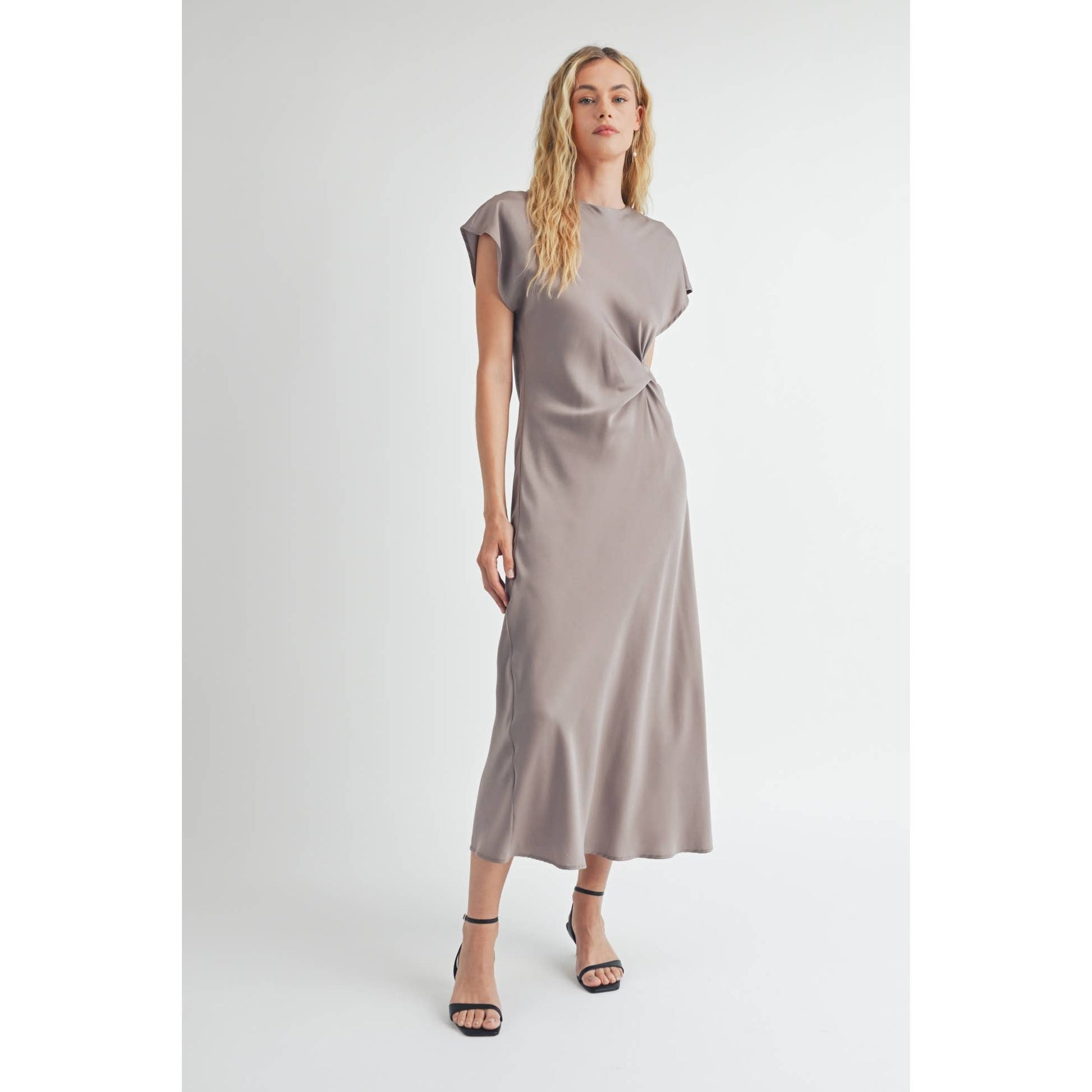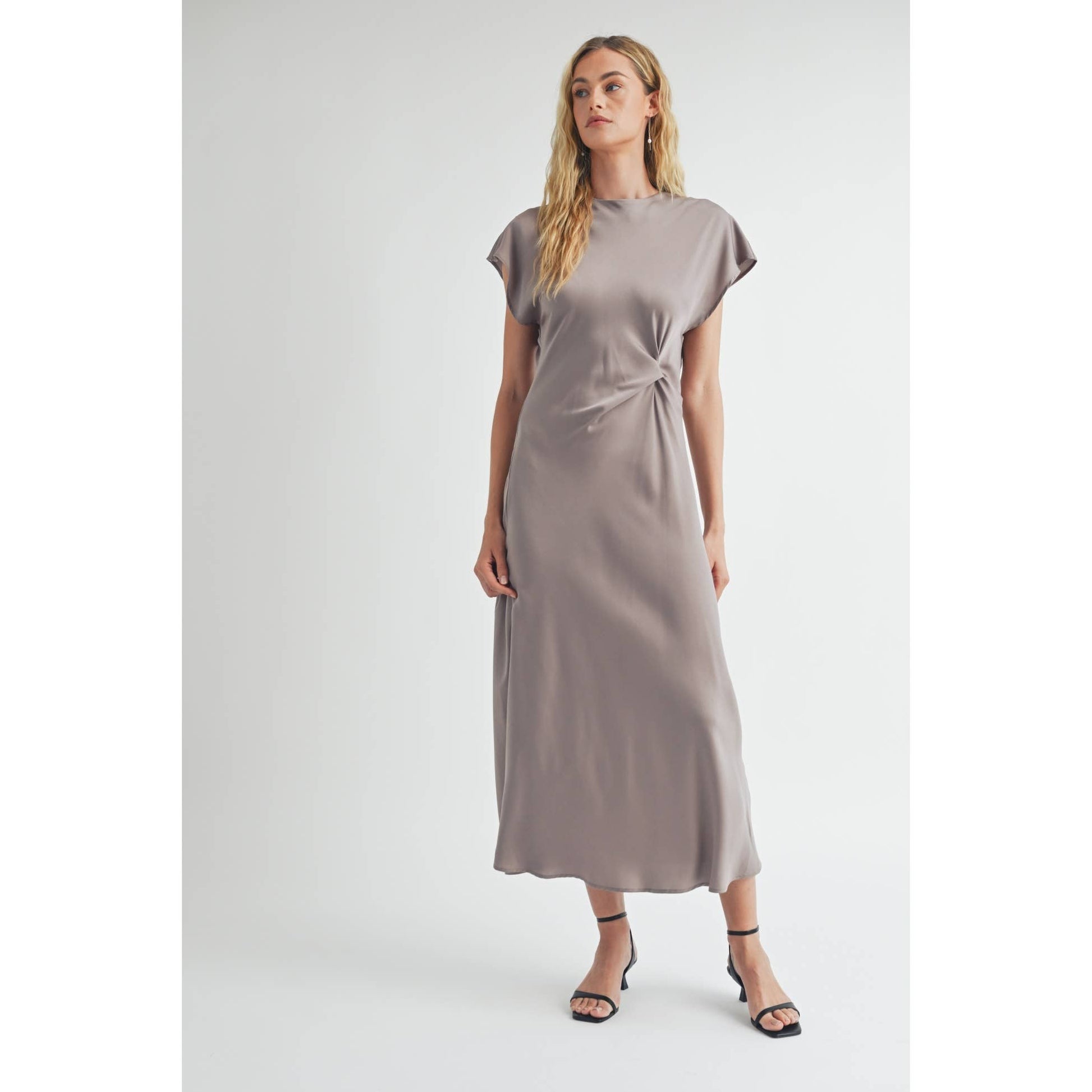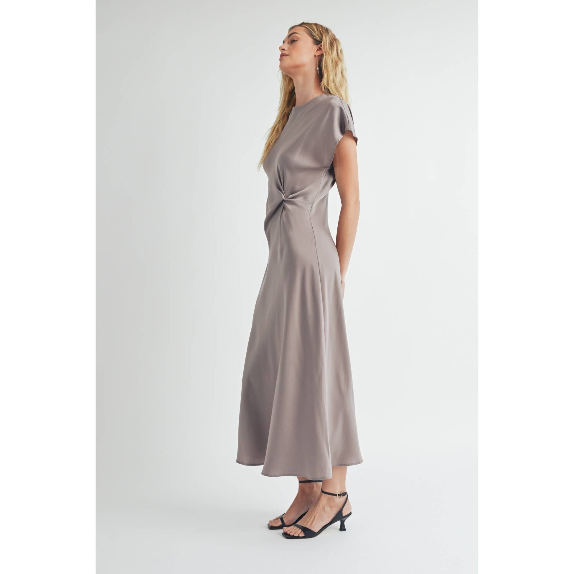 FUN SATIN BIAS CUT WAIST TWIST DRESS