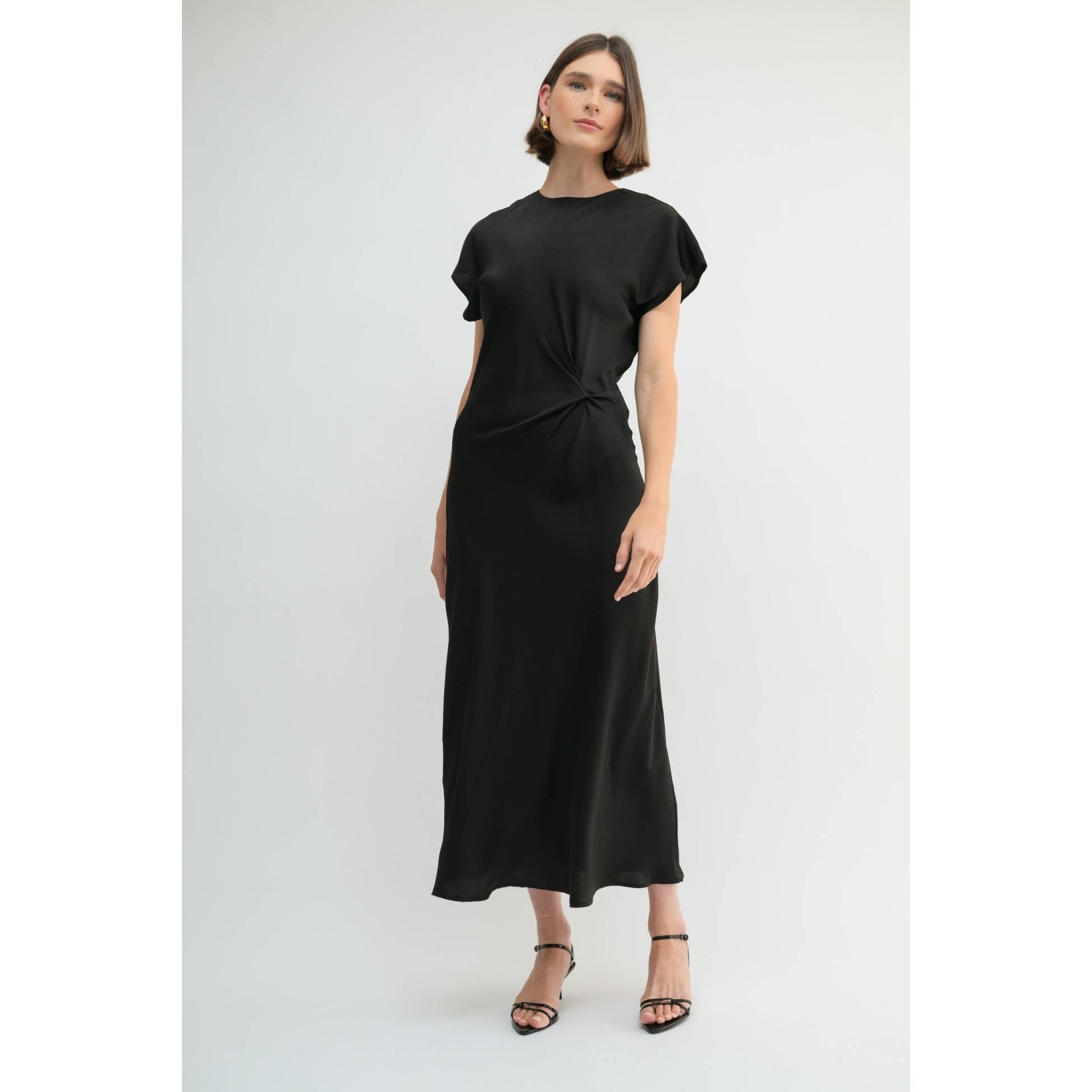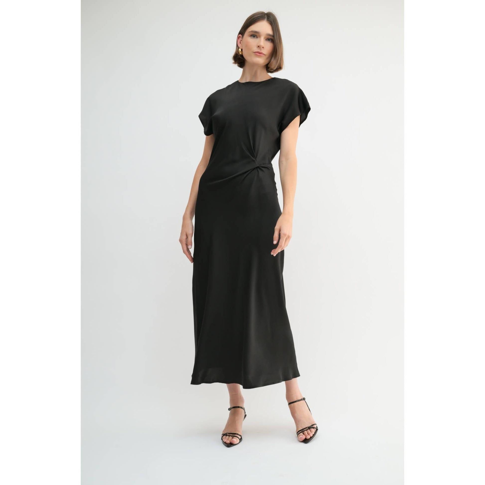 SATIN BIAS CUT WAIST TWIST DRESS